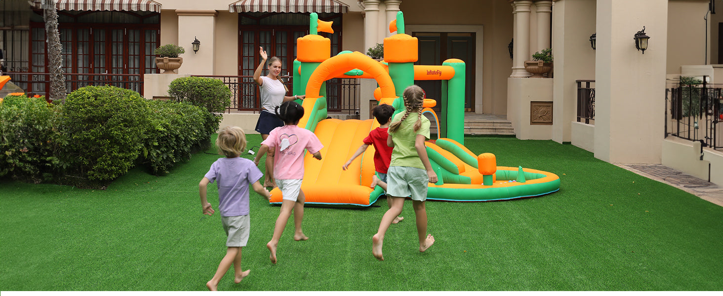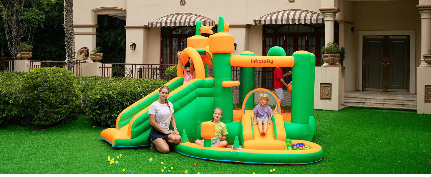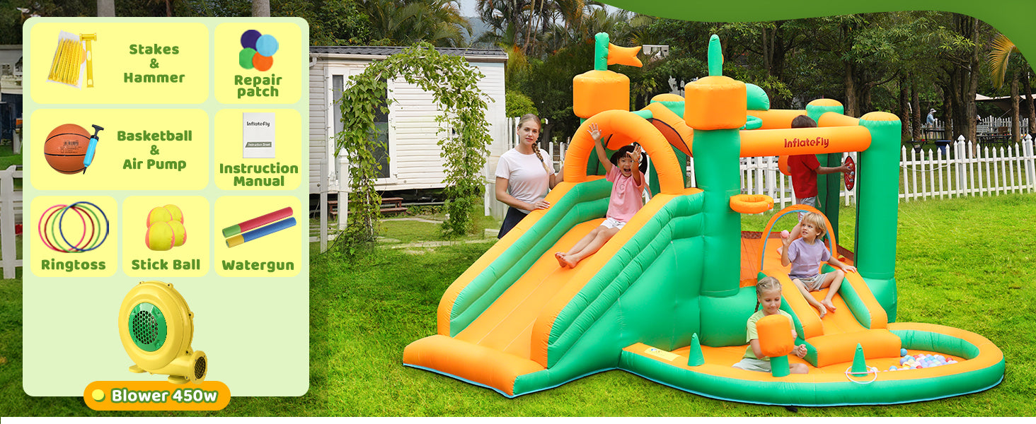 - Kids can slide simultaneously, bounce, and enjoy water play in the ball pit