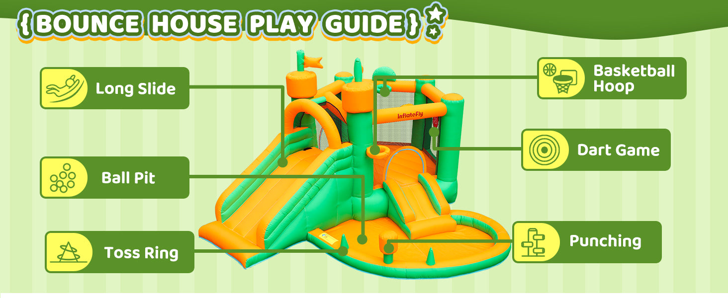 - Air leakage holes prevent over-inflation and ensure safe bouncing