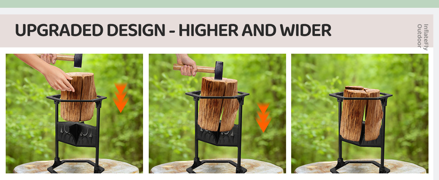 - Requires only a simple hammer or mallet to drive logs through the strategically designed splitting wedge
