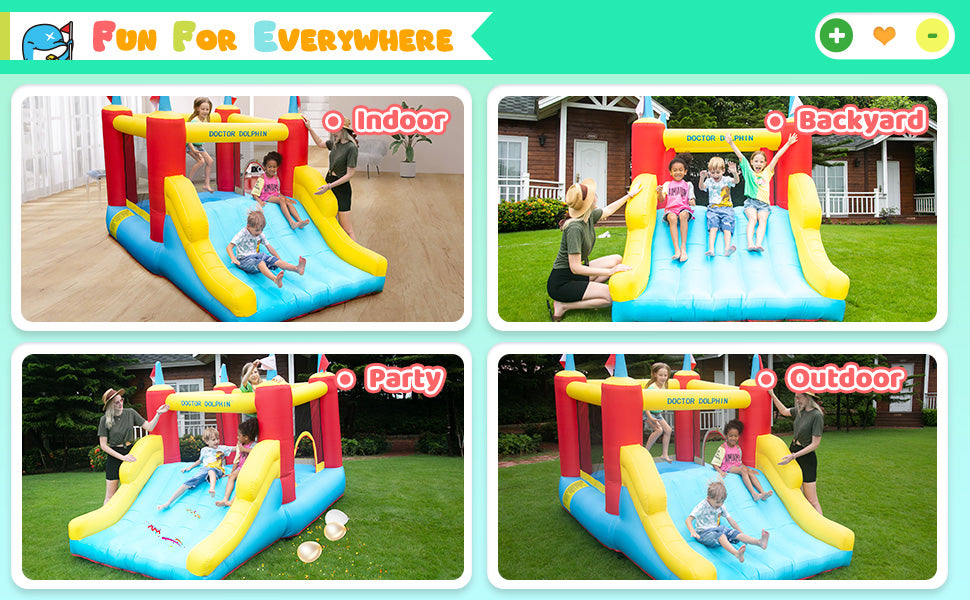 Versatile enough for both indoor and outdoor settings, this bouncy castle can double as a waterslide when water is added. Just remember to dry it thoroughly before storage to maintain its condition.