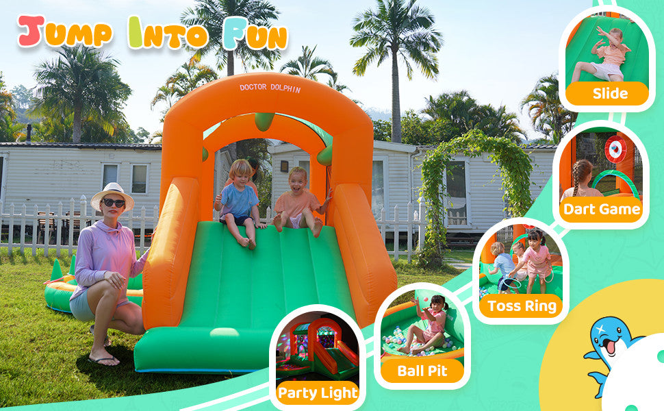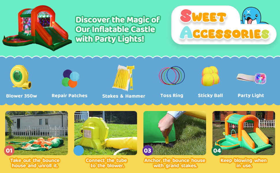 Inflatable Ball Pit: The bounce castle includes a ball pit for toddlers, which can be used wet or dry. You can pour water inside the ball pit pool to enhance the fun.