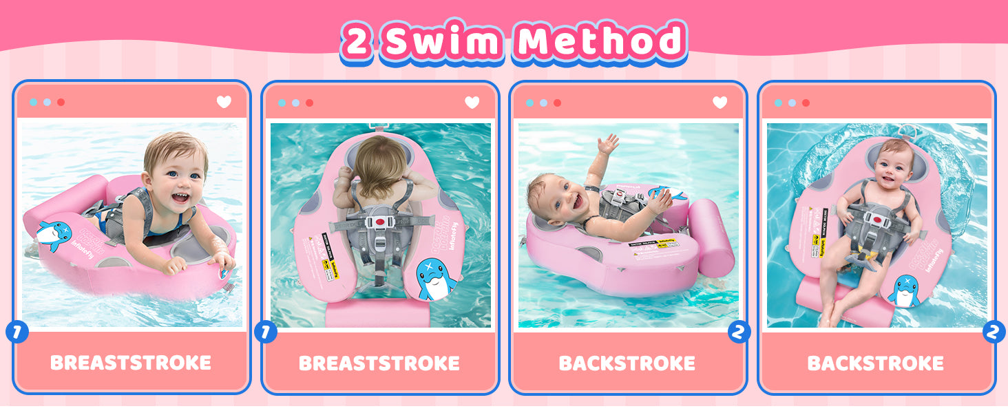 Engineered for versatility, our baby swim float is ideal for both tummy and back swimming. This dual-use design encourages swimming development and makes for a fun, comfortable experience for your baby.