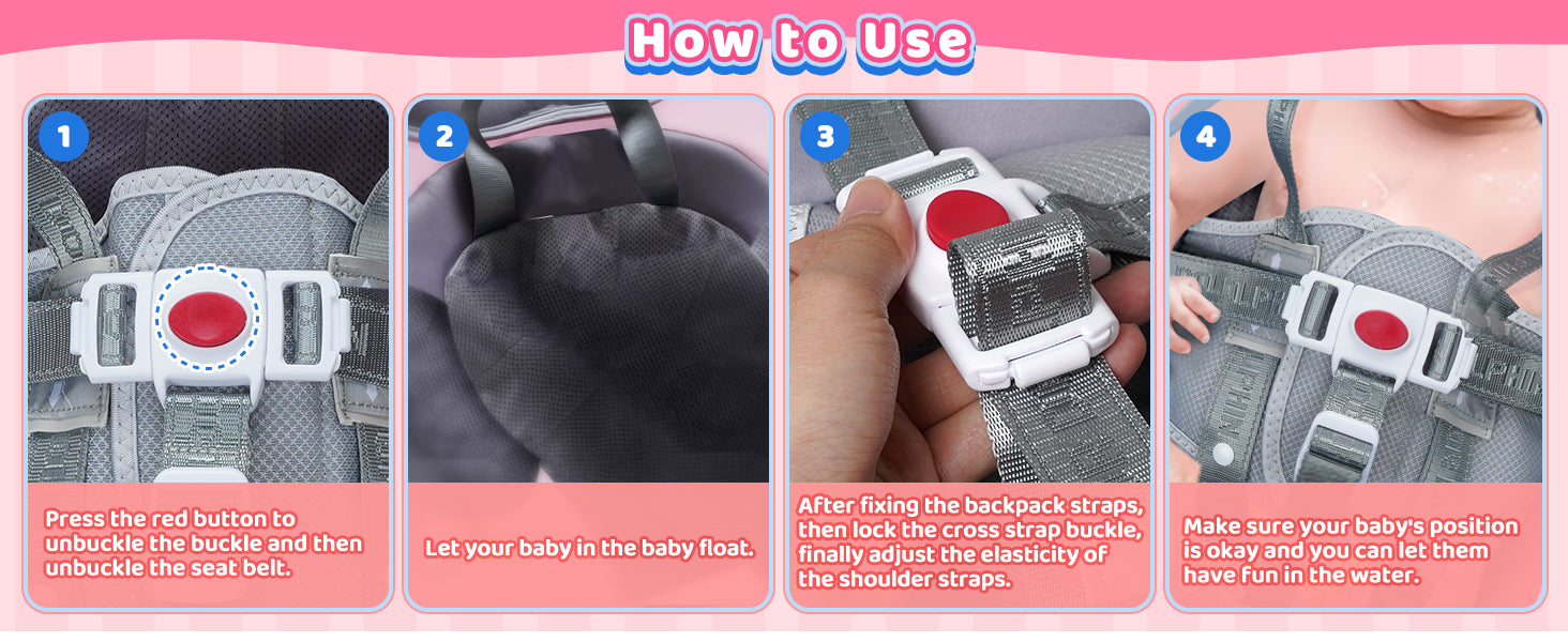 With safety as our top priority, this float features an adjustable safety strap that ensures a snug fit for your baby. It’s designed to keep your infant secure while they enjoy the water, giving parents peace of mind(Infants should never be left unattended in the water, even with the use of a swim float).