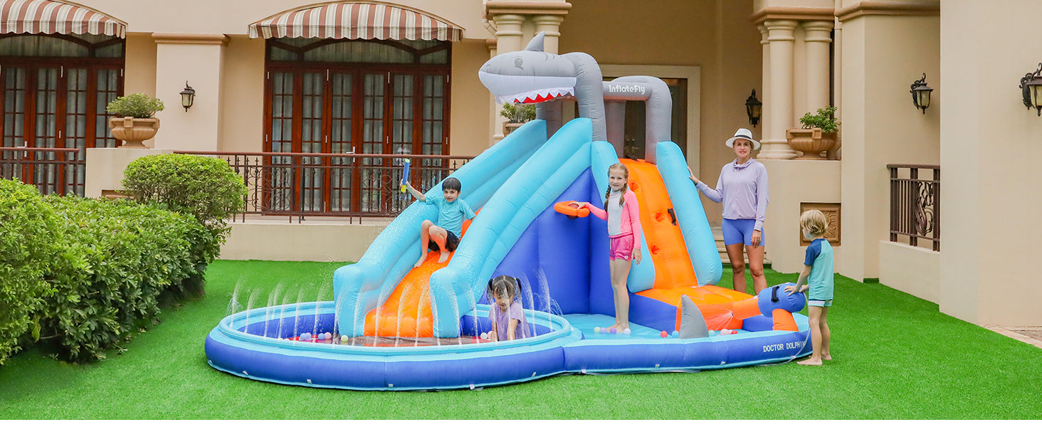 Shark Waterslide with Sprinkler Pool