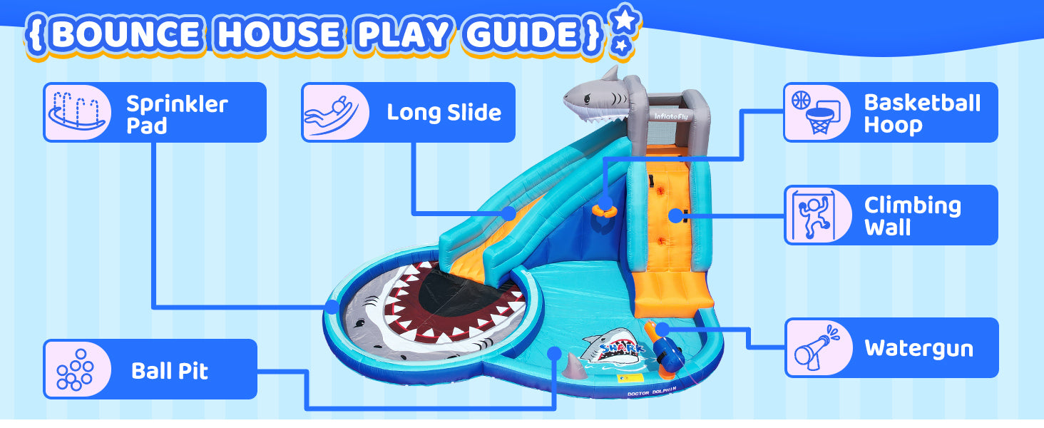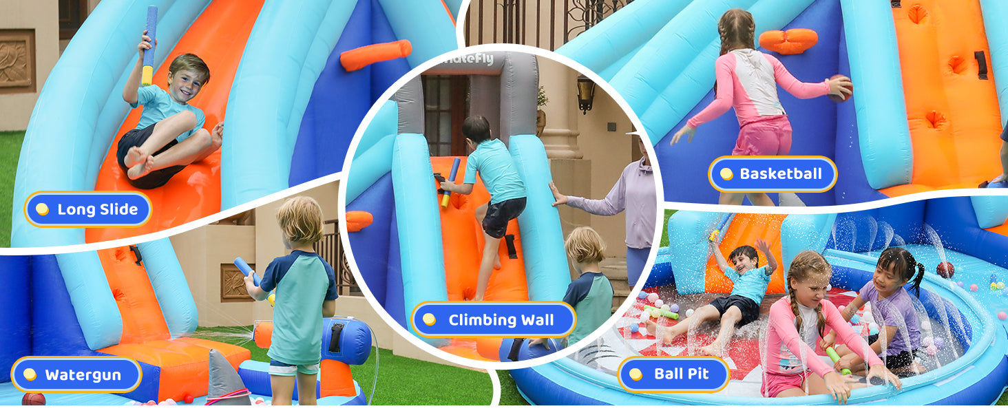 - Water Gun: Enhance the excitement with the included water gun, perfect for playful water battles and extra splashes. Children can enjoy the water gun while zooming down the slide or playing in the ball pit.
