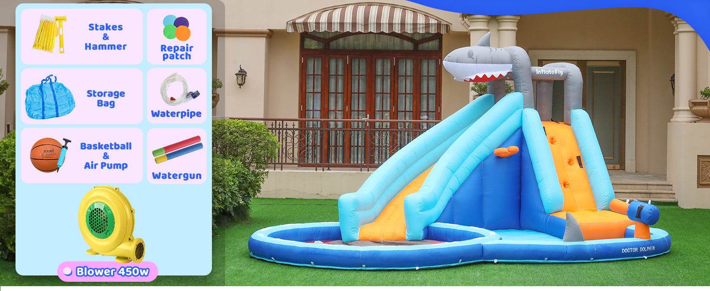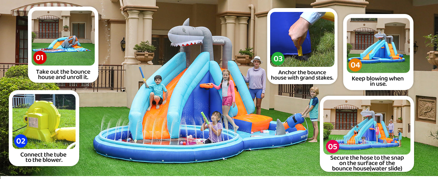 - This inflatable water park is ideal for various occasions, including birthday parties, family gatherings, indoor and outdoor celebrations. It can be set up in the backyard, front yard, or any spacious environment, providing kids with a fun and engaging outdoor activity.